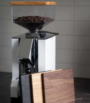 Produktinformasjon: Trelokksettet vårt til Mazzer Mini A-kvernen inkluderer et stort trelokk til bønnebeholderen og en justeringsknapp i tre, tilgjengelig i eik, mørk eik, oliventre og valnøtt. Mazzer Mini B inkluderer et stort trelokk til bønnebeholderen og et mindre til den lille kjeglen som festes foran på kvernen. Dette tilbehøret er ikke bare praktisk, men også vakkert, med et design som utfyller og forbedrer kvernens estetikk. Hver del er nøye laget for å gi en sømløs passform og funksjon, mens den unike treteksturen og -finishen gir en varm og innbydende følelse til kaffebryggerutinen din.