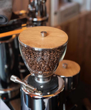 Forny din Mazzer Mini A & B med Wiedemann Manufakturs trelokk og justeringsknapp, og opplev et nytt nivå av eleganse og personlig stil i kaffebryggingen din.