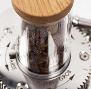 Opplev nykvernet bønner hver dag med vår kompakte bønnebeholder fra Wiedemann manufaktur. Vår produkt er designet for å kun romme den mengden bønner som forbrukes i løpet av en dag, og derfor kalles den "Day hopper".