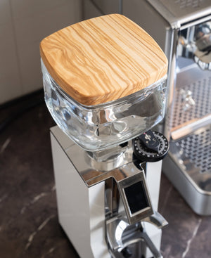 Dette håndlagde lokket i massivt tre er spesiallaget for Eureka Mignons 500 g glassbeholder. En enkel, men stilig måte å forbedre både følelsen og utseendet til kaffekvernen din – perfekt for de som setter pris på materialer med sjel.
