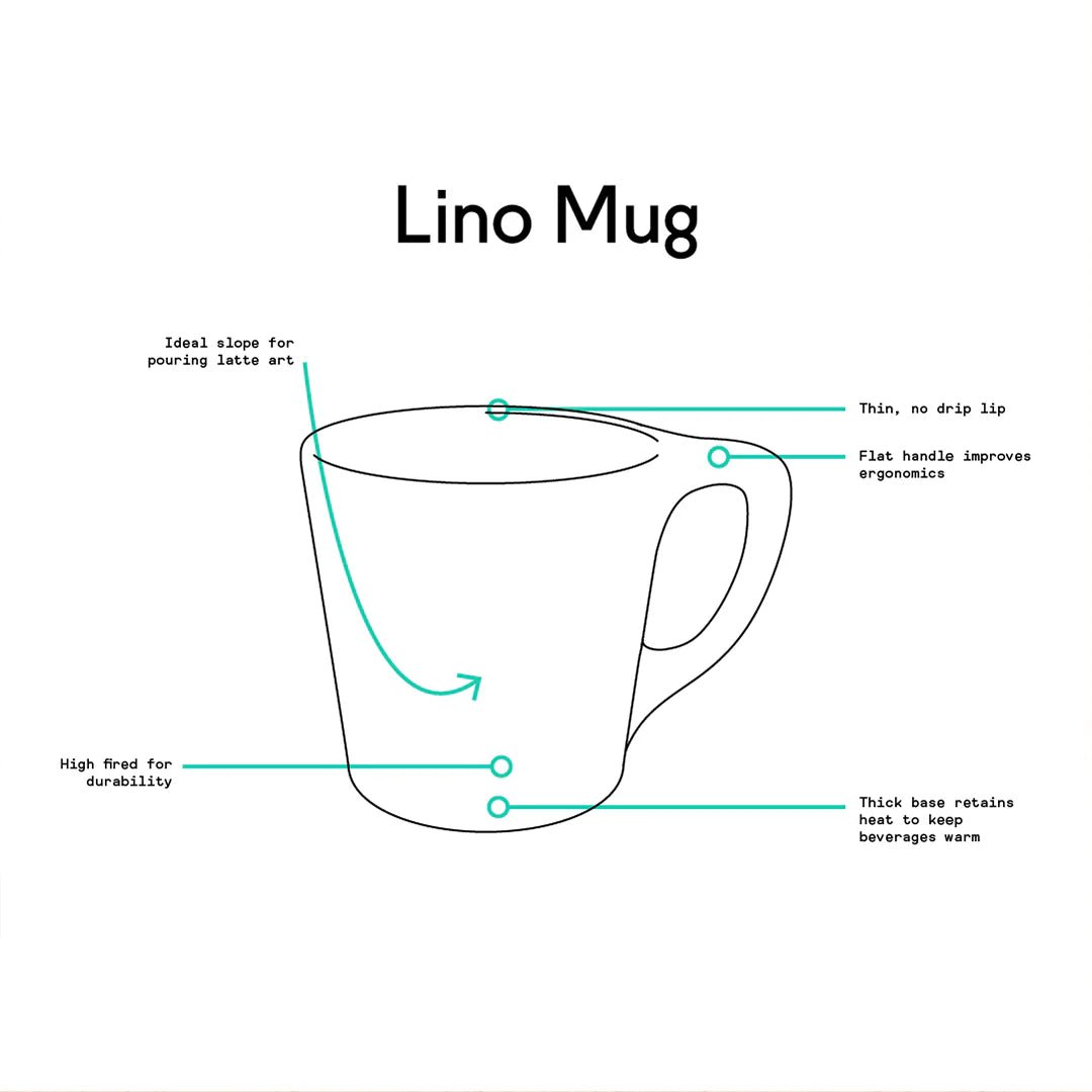- Tilgjengelige versjoner i Lino-serien: Espressokopp 9 cl, cappuccinokopp 18 cl, latte-kopper 24 cl og 36 cl, kaffekopp 30 cl, pulled-tallerkener, melkekanne og fargerike mugger