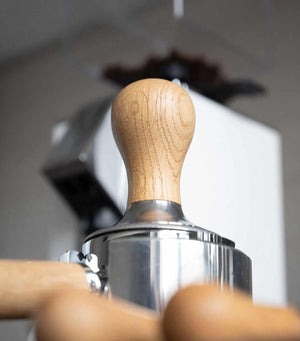Vår presisjon tamper er tilgjengelig i fire forskjellige treslag og i sølv og svart for å matche din personlige stil og din espressomaskins estetikk: Middelhavets oliventre, rustikk eik fra tyske skoger, edelt valnøtttre fra Nord-Amerikas skoger og luksuriøs røkt eik fra Tyskland. Velg mellom størrelser på 41 mm, 58 mm og 58,5 mm for å passe perfekt til din maskin og dine behov.