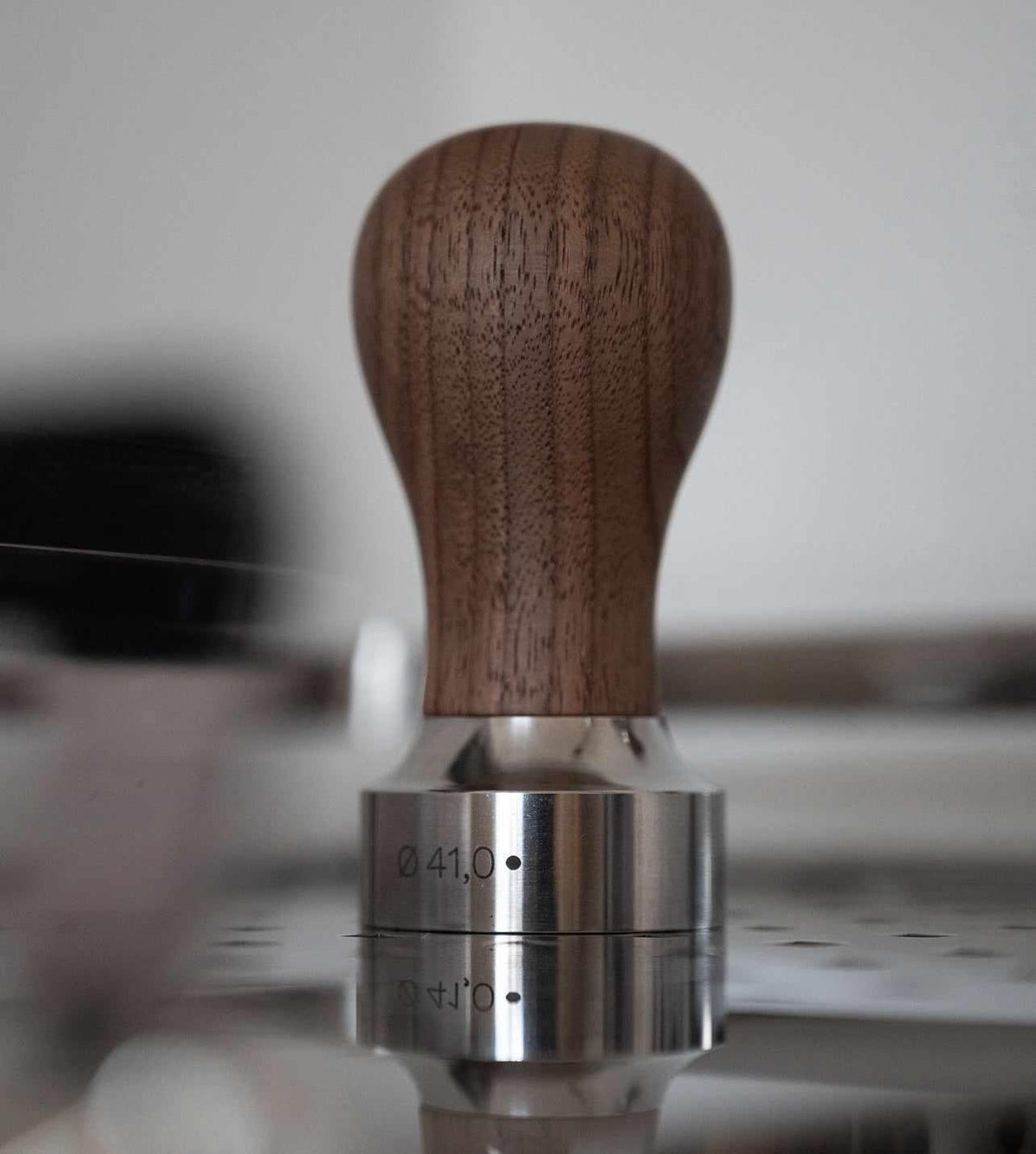 Vår presisjon tamper er tilgjengelig i fire forskjellige treslag og i sølv og svart for å matche din personlige stil og din espressomaskins estetikk: Middelhavets oliventre, rustikk eik fra tyske skoger, edelt valnøtttre fra Nord-Amerikas skoger og luksuriøs røkt eik fra Tyskland. Velg mellom størrelser på 41 mm, 58 mm og 58,5 mm for å passe perfekt til din maskin og dine behov.