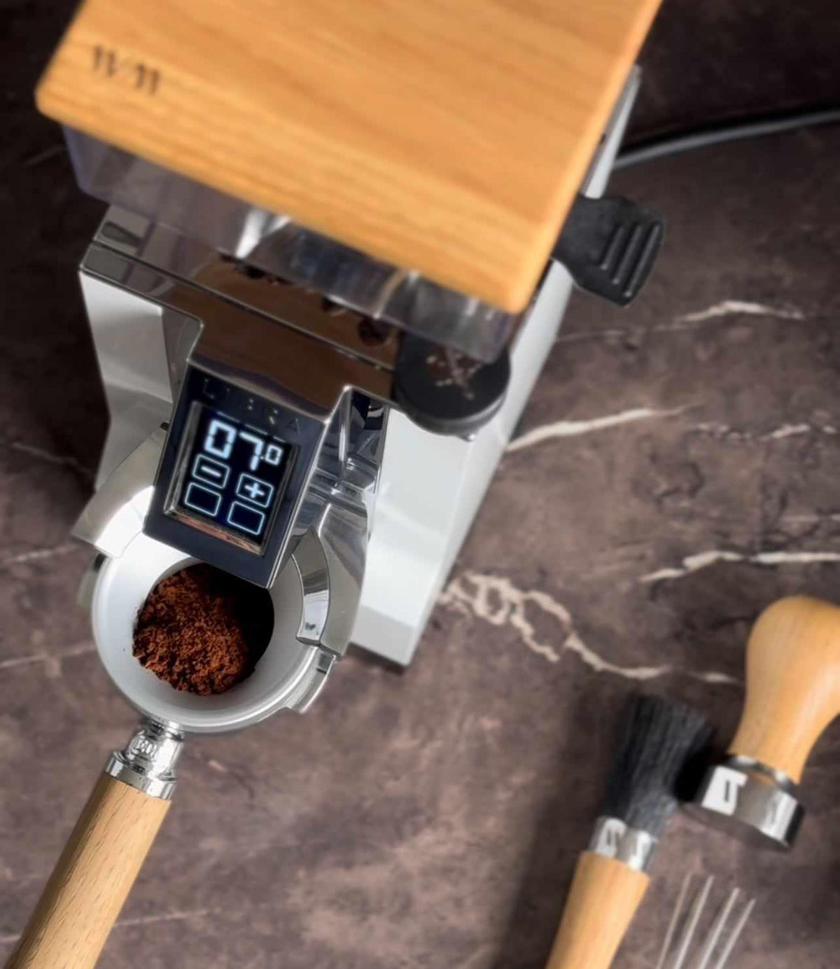 Oppdag skjønnheten og presisjonen til håndlagde trelokk fra Wiedemann Manufuktur, designet for å forbedre estetikken og følelsen til din ECM eller Profitec kaffekvern. Med et enestående fokus på detaljer og kvalitet, tilbyr vi deg muligheten til å gjøre kaffebryggingen din mer personlig.