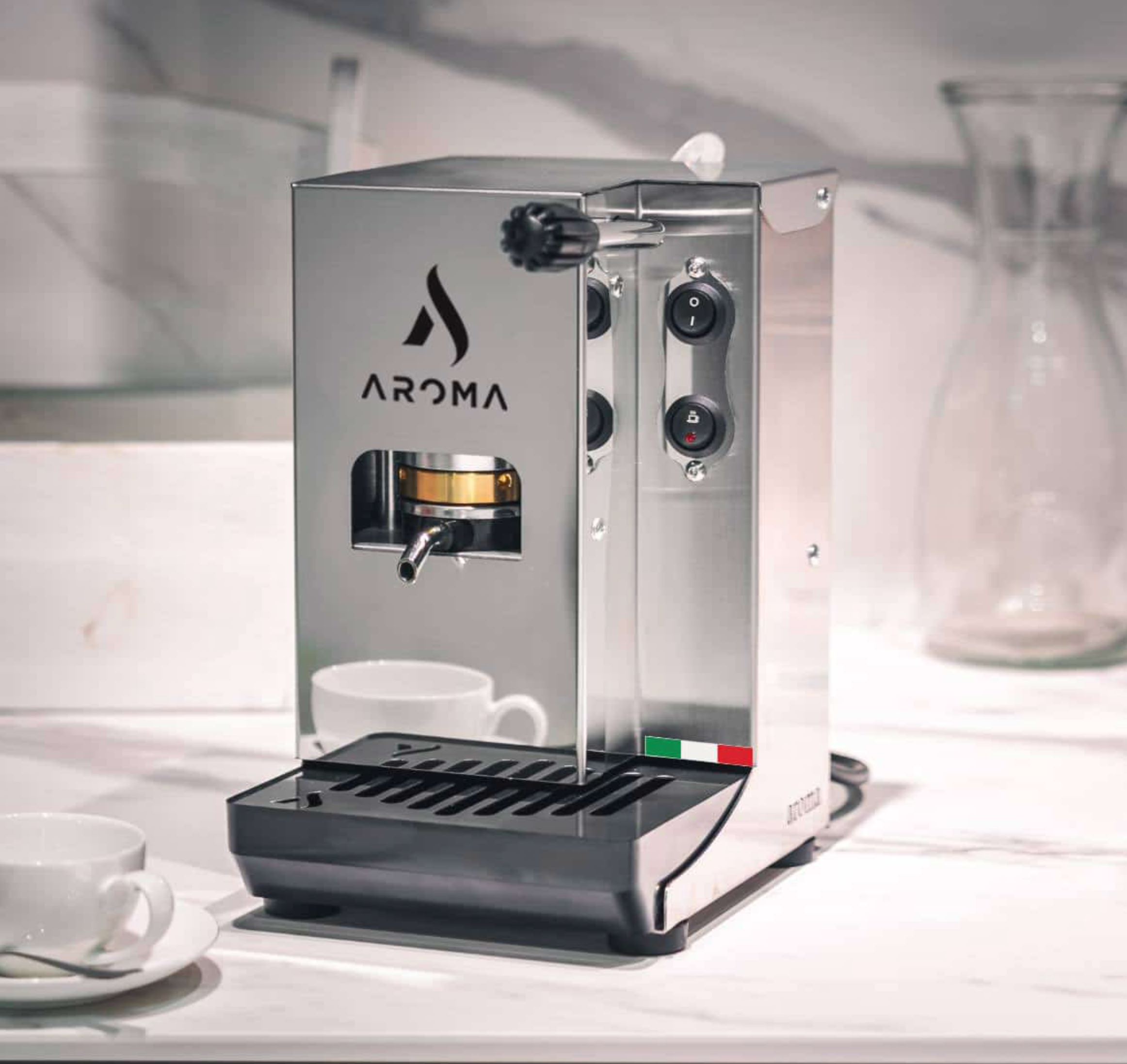 Ved å bruke materialer som messing, rustfritt stål og glass sikrer Aroma at hver maskin leverer profesjonell Espresso hjemme. Filosofien bygger på enkelhet, pålitelighet og å bevare den autentiske italienske espressoupplevelsen.