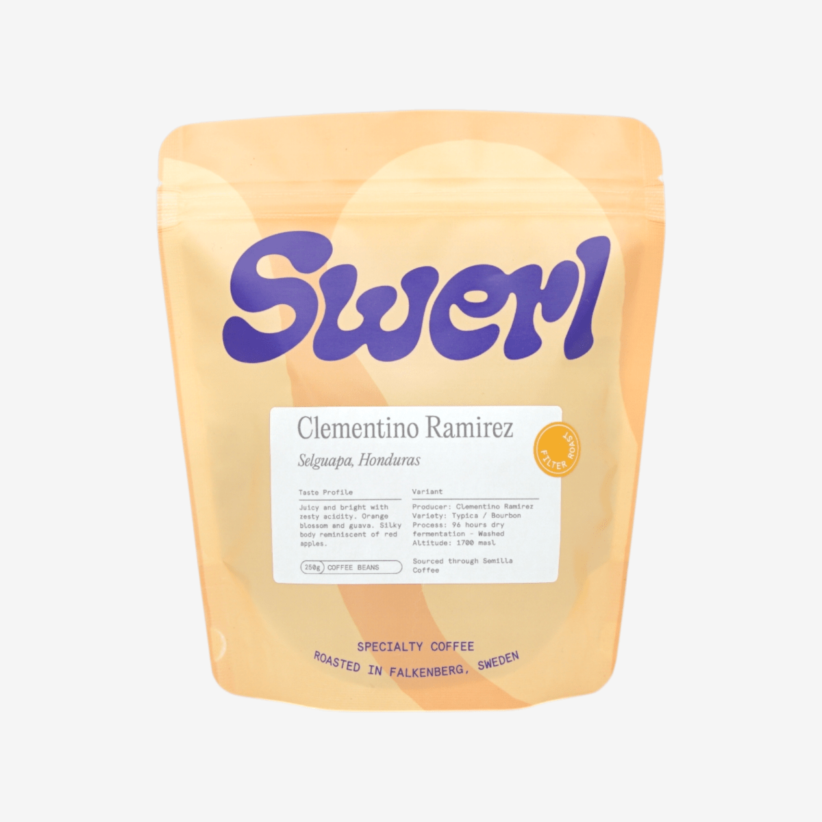 Detta är första gången Swerl Coffee Roasters köper kaffe från Clementino Ramírez – en producent med en lång och komplex resa bakom sig. Clementino var en av de allra första kaffeodlarna i Selguapa, en liten by högt uppe i Montecillos-bergen i Honduras. Familjen började odla kaffe redan på 1980-talet, men i många år såldes kaffet genom traditionella mellanhänder till mycket låga priser.