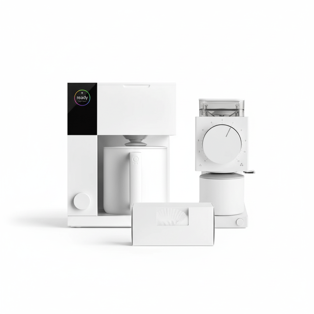 Ønsker å kombinere funksjonalitet med estetikk. Den hvite finishen passer perfekt i moderne, lyse kjøkken og skaper et sammenhengende uttrykk på benken. Med Aiden får du full kontroll over bryggeprosessen, mens ODE Gen 2 sikrer perfekt malingsgrad for hver bryggemetode.