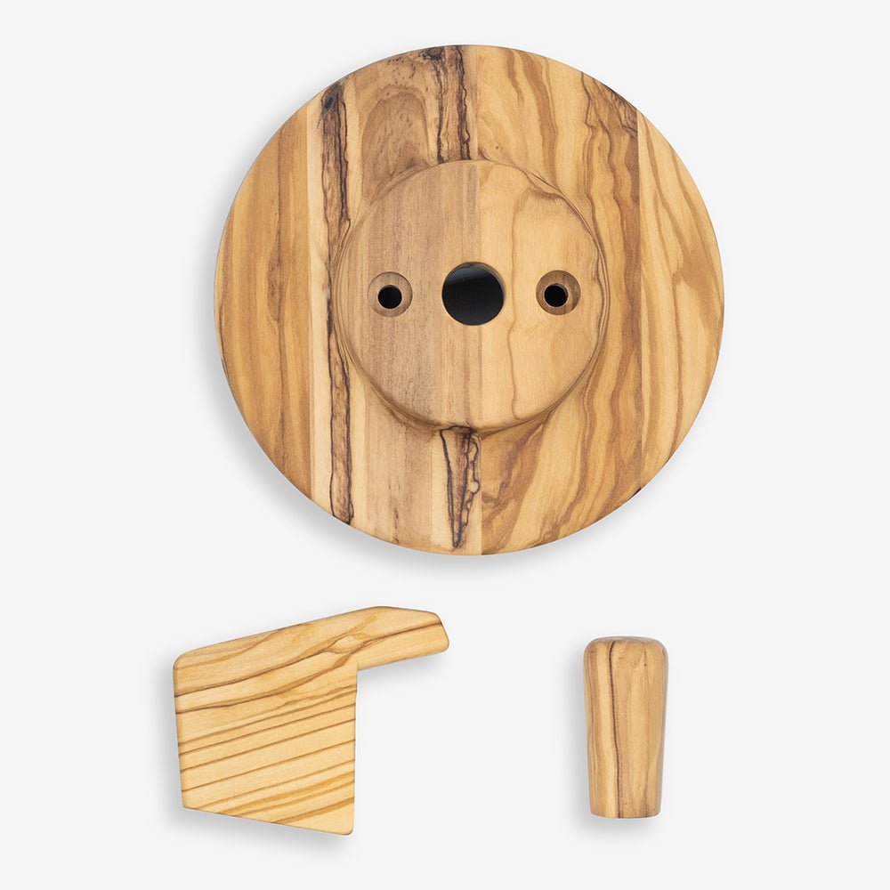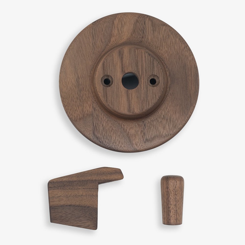 Håndlagde og nøye utvalgte tresorter komplementerer metallkomponentene visuelt og gir en unik haptisk følelse.