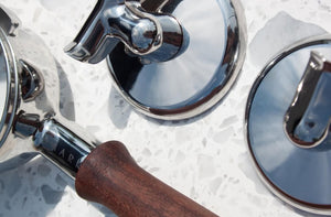 Dette er Pesados hybride portafilter, spesialdesignet for E61- og LM-gruppehoder – med muligheten til enkelt å bytte mellom åpen og dobbel tut uten å endre. portafilter. Så får du to funksjoner i én.