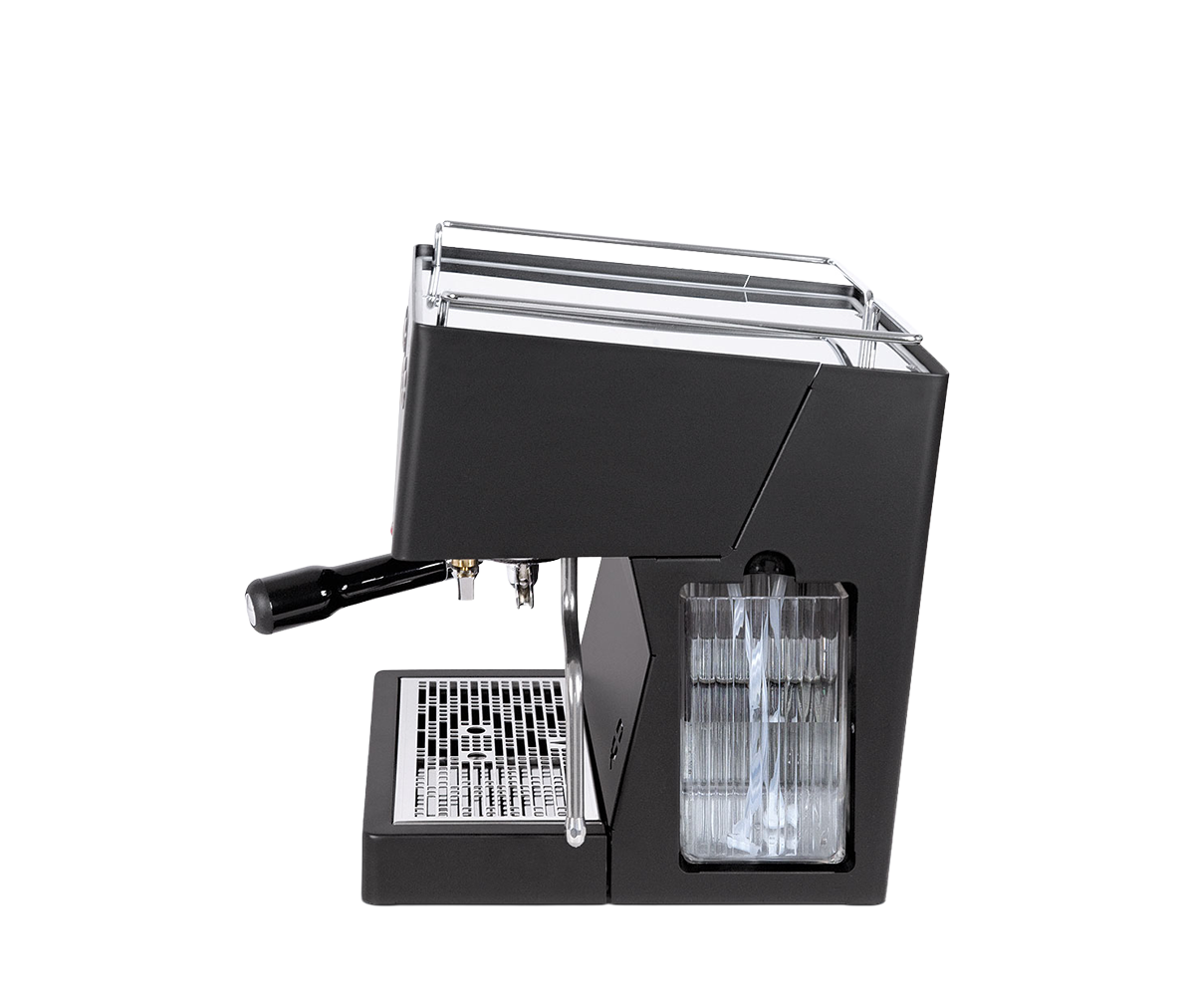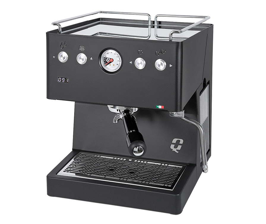 Materiale: Rustfritt stål; finnes i stål, matt svart og hvit; Quick Mill-brygggruppe med O-ring; anti-burn dampstav