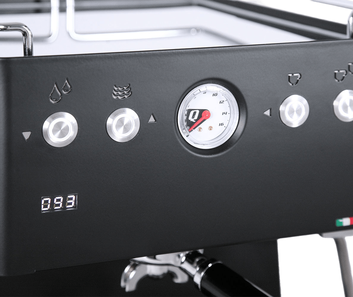 Kontroller: PID; skjerm (temp, shot-timer, innstillinger); programmerbar preinfusjon/økonomi/standby; pumpetrykkmåler 0–16 bar; ekspansjonsventil; bakbelyste vandalsikre knapper; på/av-bryter