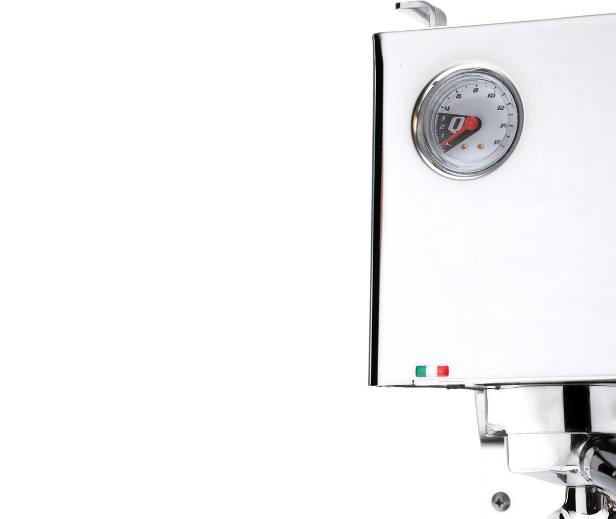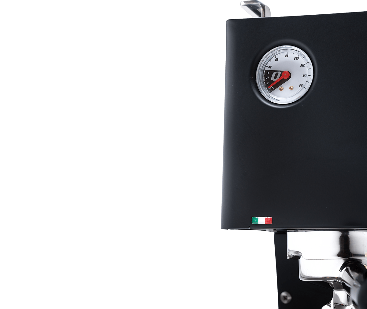 Materiale: Fullt rustfritt stål; finnes i stål eller matt svart; Quick Mill-bryggruppe med O-ring; anti-burn dampstav