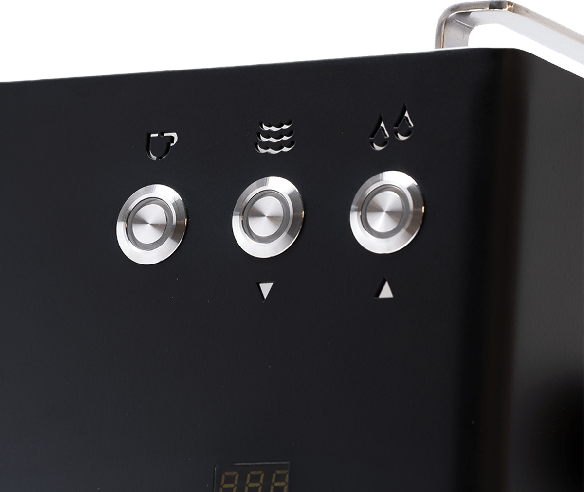 Kontroller: PID; display (temp, shot-timer, innstillinger); programmerbar preinfusjon, eco og standby; pumpetrykkmåler 0–16 bar; profiling valve; vandalsikre bakbelyste knapper; på/av-bryter