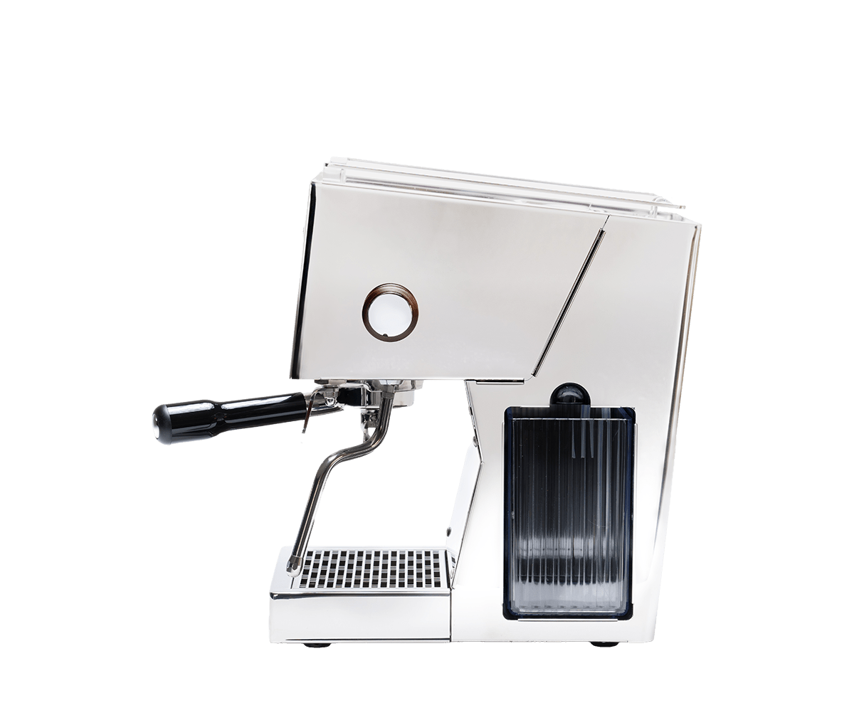 Den integrerte skjermen viser temperatur, shot-timer og innstillinger. Maskinen tilbyr også programmerbar preinfusjon, standby-modus og eco-modus for fleksibel bruk og energieffektivitet.