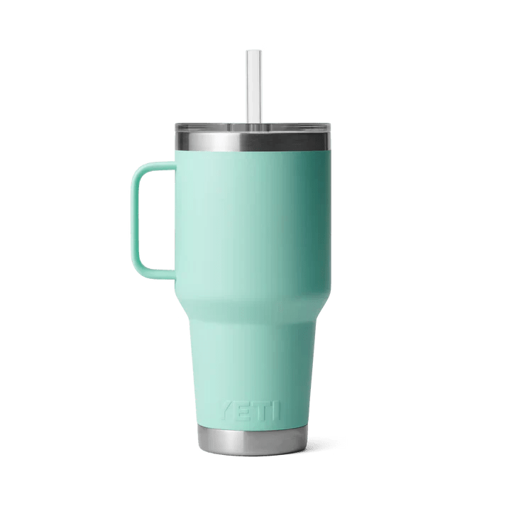 YETI Rambler-stråkruset på 1 liter i fargen Seafoam er det perfekte kruset for de som vil ha iskalde drikker hele dagen, uansett hva. Om Enten du er på eventyr eller hjemme, er kruset utstyrt med et gjenbrukbart sugerør og lokk som holder drikken din trygg og sølefri.