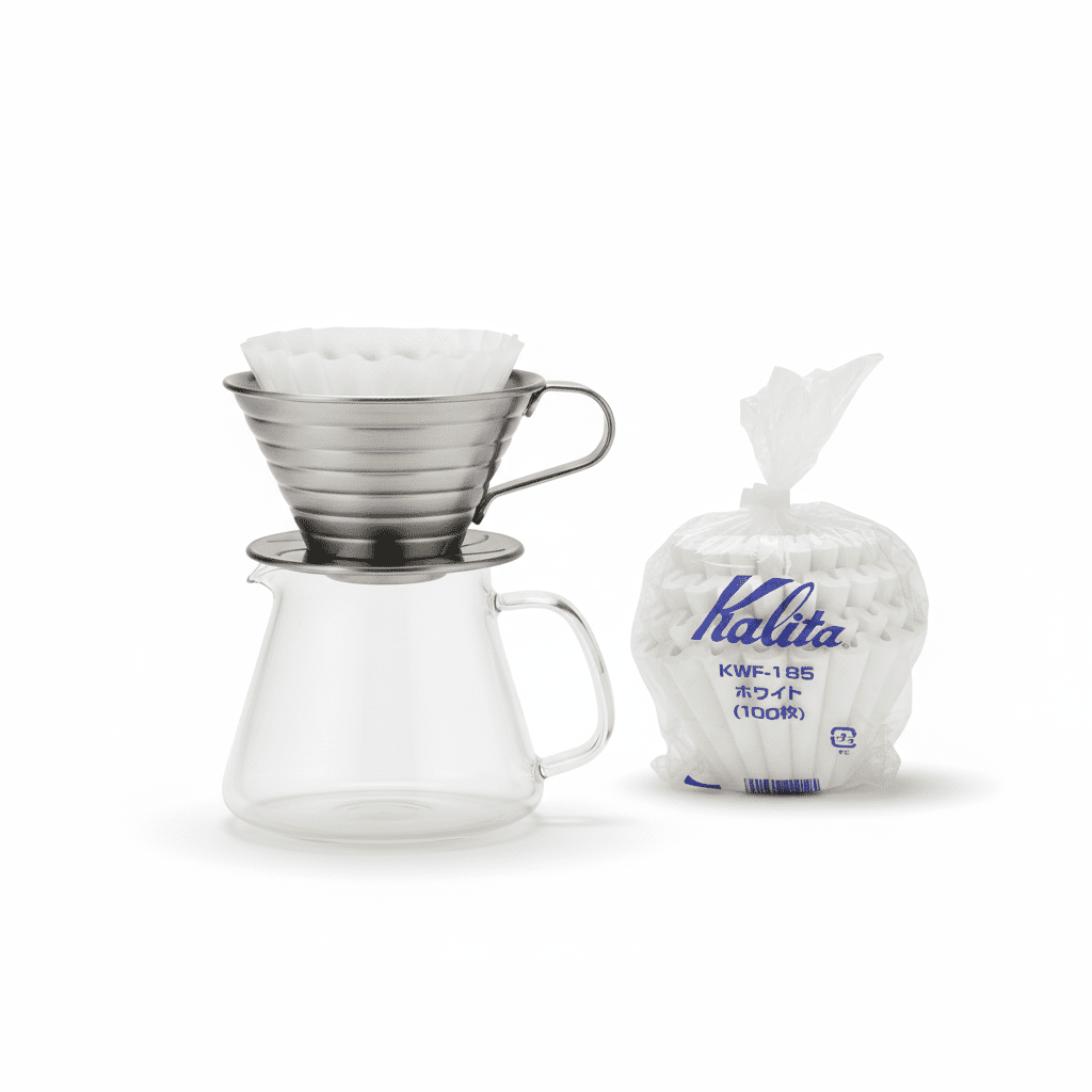 - Filterpapir (100 stk.) – Naturlig bleket filterpapir for Kalita 185-serien, optimalisert for en ren og balansert kopp kaffe. Perfekt for 2–4 kopper.