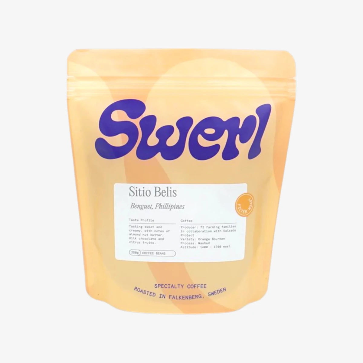 Denne kaffen har toner av VASKET ORANSJE BOURBON - MANDLENØTTSMØR, MELKESJOKOLADE, SITRUSFRUKTER.