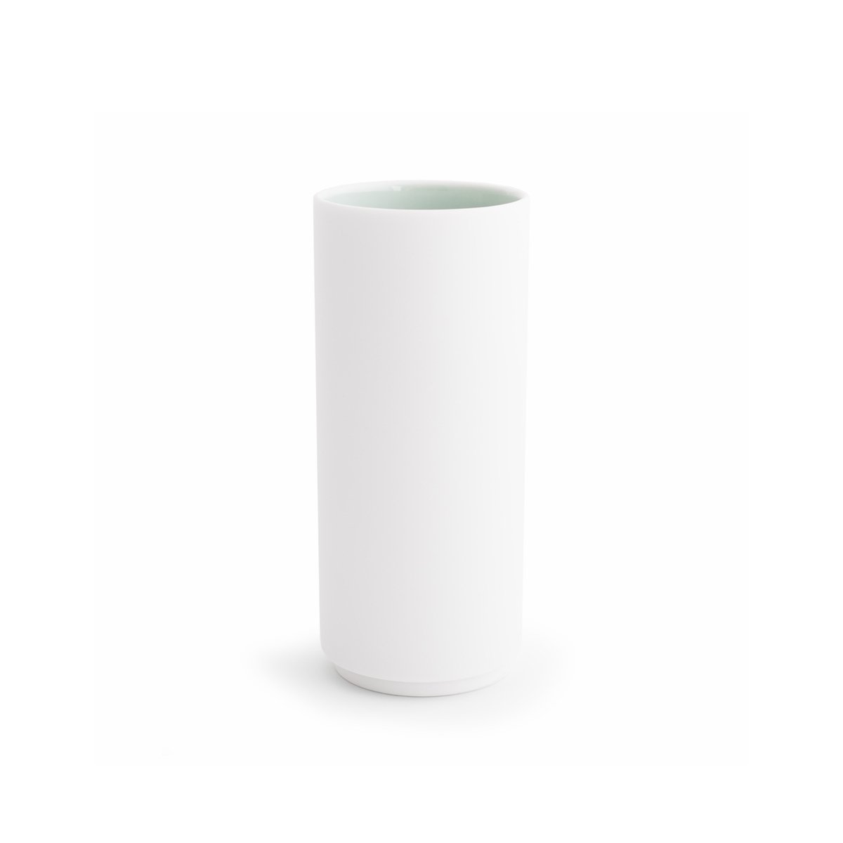Produsert i slitesterkt porselen med utmerkede termiske egenskaper hjelper koppen til å holde kalde drikker kalde og varme drikker varme lenger. Den håndpolerte, matte utsiden gir et mykt og kontrollert grep, mens den glaserte innsiden skaper en jevn overflate som gjør hver påfylling smidig og presis.