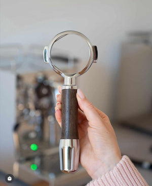 Vårt håndtak med designen "Elegant" kommer med originale portafilterhoder fra ECM, mens alle andre portafilter har portafilterhoder i rustfritt stål. Hver dag gir vårt håndtak en haptisk opplevelse som er enestående. Vårt tre behandles for hånd med organisk hardolje, slik at den naturlige følelsen i treet bevares.