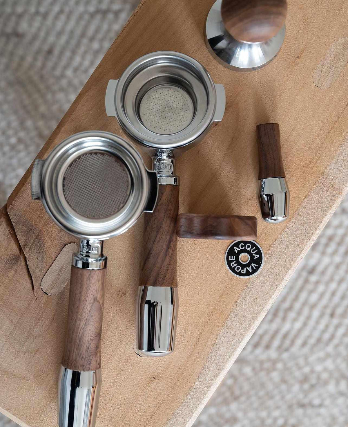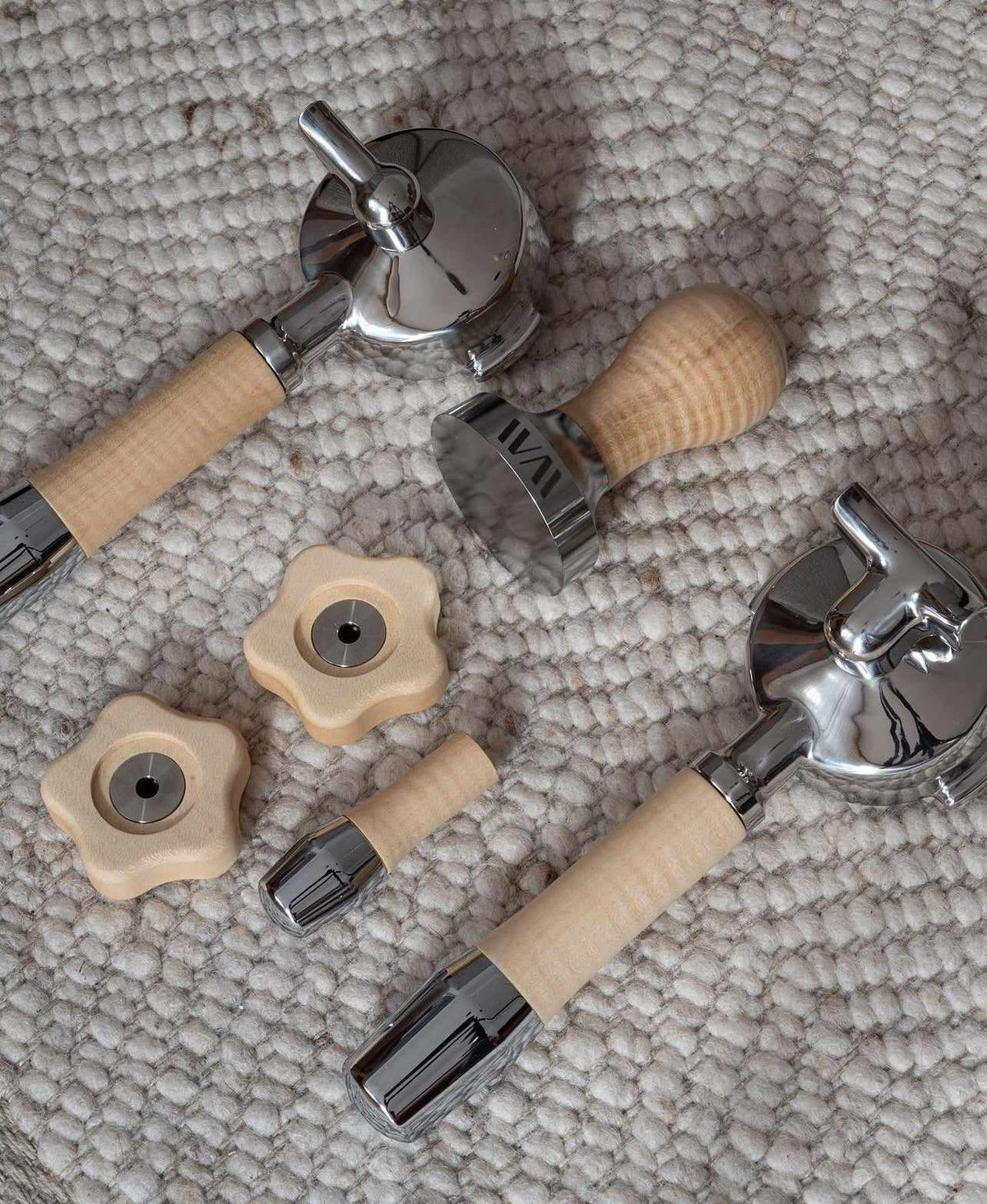 Vårt håndtak med designen "Elegant" leveres med originale portafilterhoder fra ECM, mens alle andre portafilter har portafilterhoder i rustfritt stål. Hver dag gir vårt håndtak en taktil opplevelse som er enestående. Vårt tre behandles for hånd med organisk hardvoks, slik at den naturlige følelsen i treet bevares.